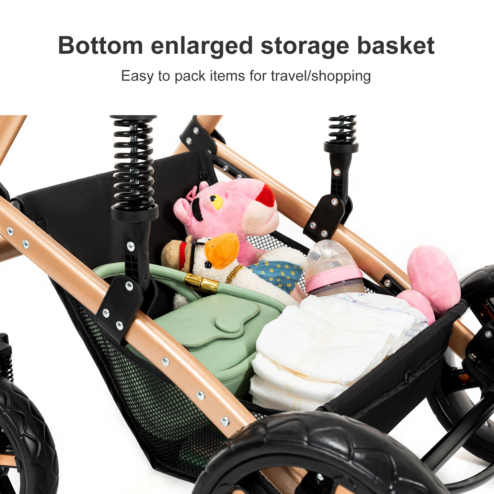 Dieser 3-in-1 Kinderwagen vereint Funktionalität, Komfort und Stil – ideal für moderne Eltern. Mit hohem Sitzdesign (High Landscape), wendbarem Sportsitz, Ein-Klick-Faltmechanismus und umfangreichem Zubehör, ist dieses Set perfekt für Babys ab der Geburt.